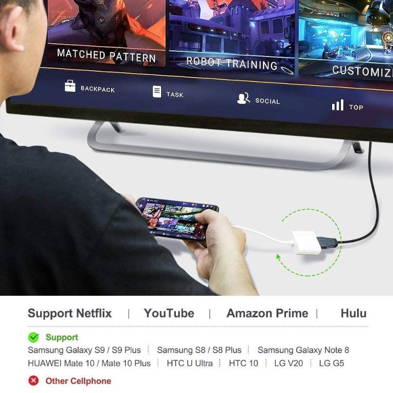 Cet adaptateur type-c vers HDMI est conçu pour connecter un ordinateur ou un téléphone USB C à un écran / moniteur / projecteur équipé HDMI pour activer le mode miroir ou prolonger. Diffusion facile d’événements sportifs, de films, de jeux et d’albums de photos directement depuis votre périphérique USB C vers un écran plus grand. Résolution jusqu’à 4K à 60Hz. Profitez d’un cinéma à emporter. Ne manquez jamais le touché gagnant ou vos épisodes télévisés préférés. Ne vous inquiétez plus des problèmes de diffusion Wi-Fi.