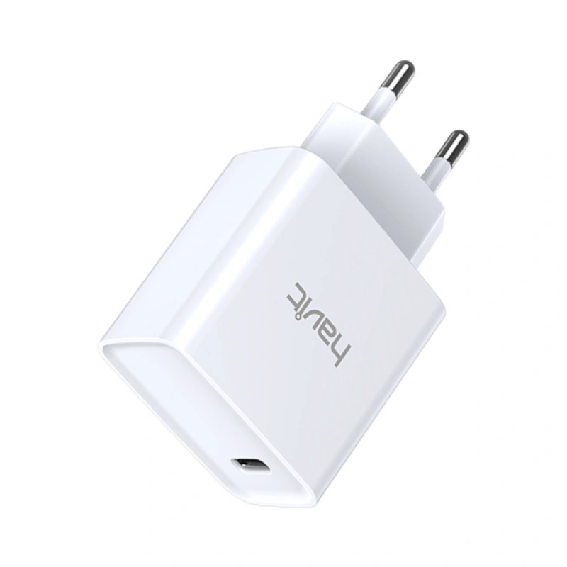 Havit HV‑UC110 – chargeur mural compact USB‑C 20 W avec PD3.0/QC3.0, prise pliable EU/US/UK/IN, protections multiples, rapide et portable.