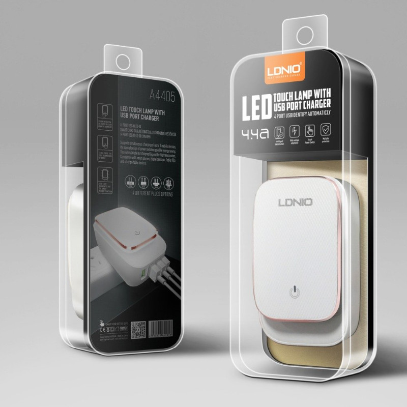 Chargeur Mural LDNIO 4.4A A4405 4 Ports avec lampe LED