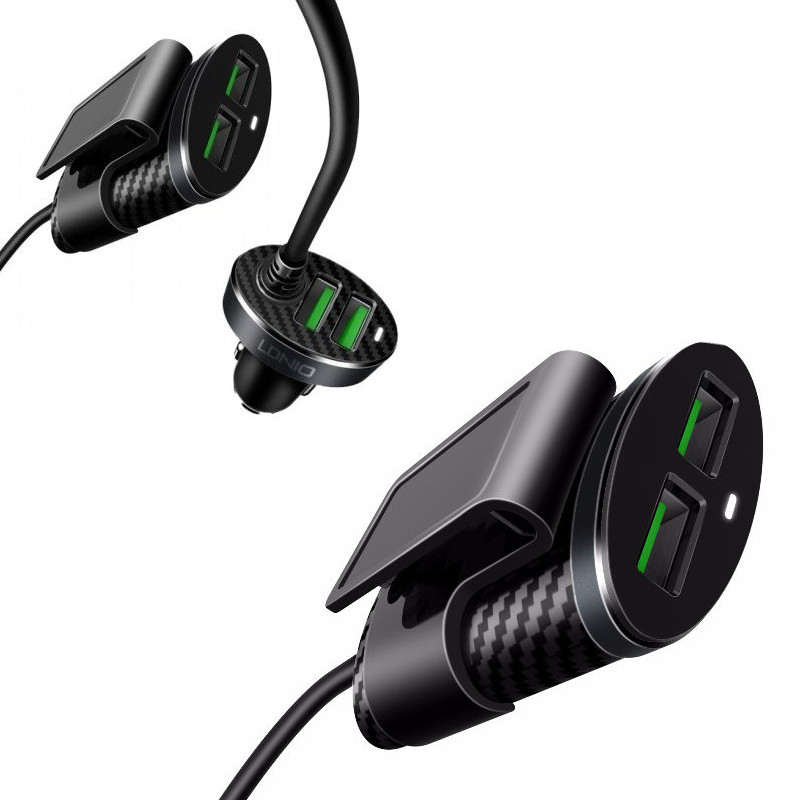 Chargeur de voiture  4 ports USB, se compose de deux parties reliées par une longueur de câble de 100 cm. Ceci est très pratique lorsque votre voiture est seulement une sortie 12V,