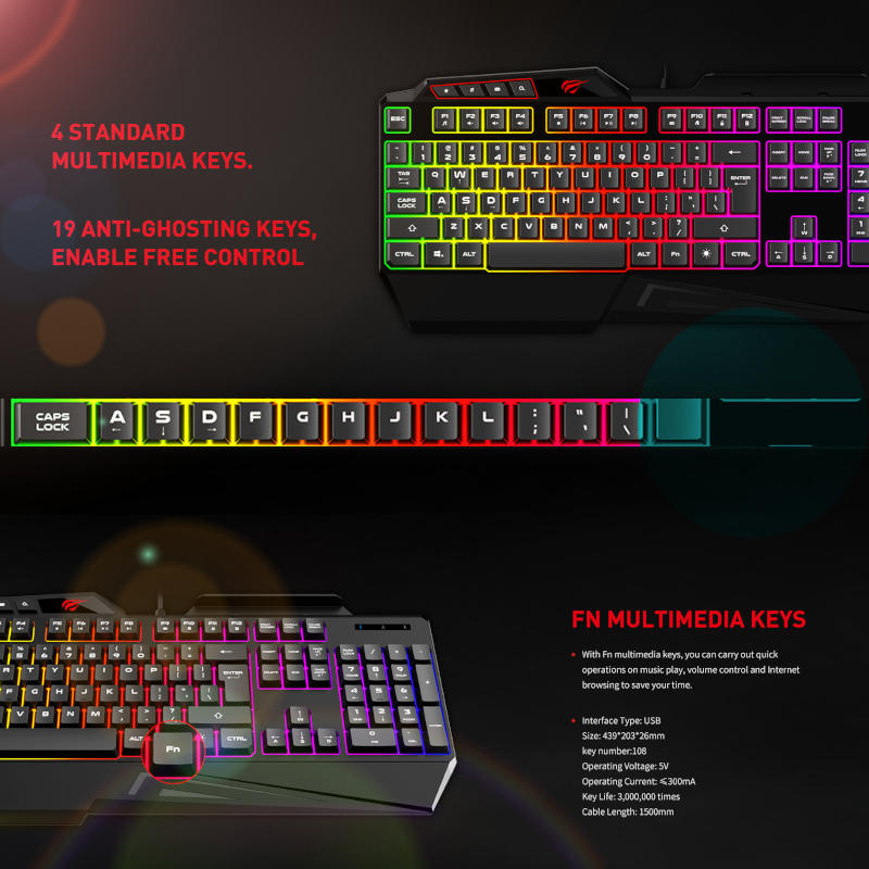 Le Clavier Gaming de HAVIT KB488L RGB spécifications: