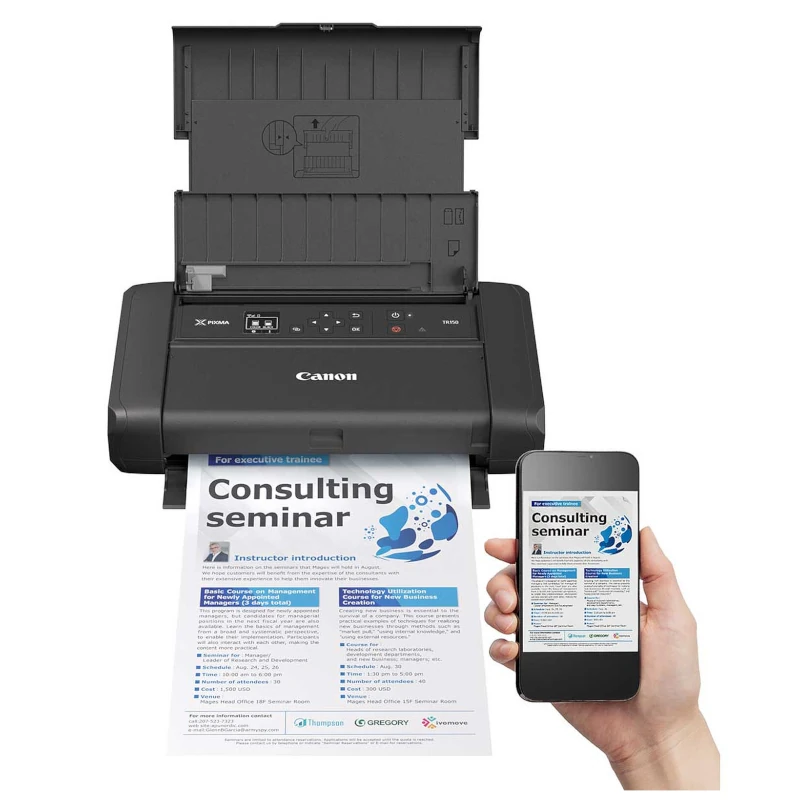 Votre activité vous suit partout. Légèreté, portabilité, connectivité sans fil, polyvalente et contrôle sur smartphone : profitez de résultats professionnels et sans effort, où que vous soyez grâce à la Canon PIXMA TR150. Conçue pour garantir le meilleur en matière d’impression nomade…