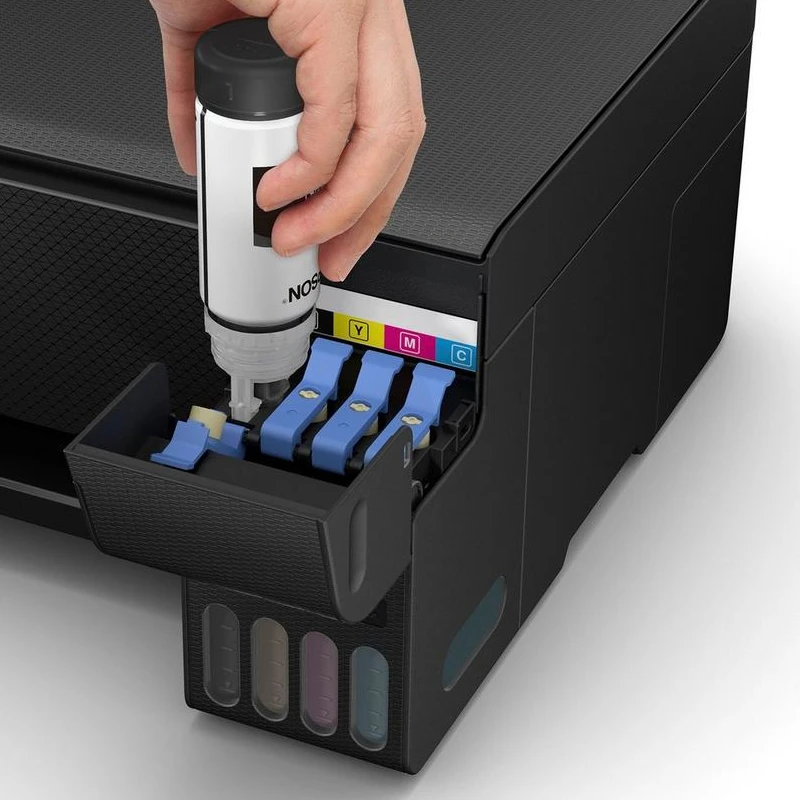 EcoTank offre une impression à domicile simple et économique : les réservoirs d’encre ultra haute capacité permettent des recharges faciles. De plus, les bouteilles sont dotées d’un détrompeur pour ne plus se tromper de couleur lors du remplissage du réservoir.