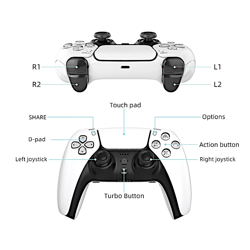 • Ce produit est un tout nouveau contrôleur sans fil, dédié aux consoles PS4 et peut jouer aux jeux PS4 sur les consoles PS5 (seuls les jeux PS4 peuvent être joués sur les consoles PS5), et peut être utilisé sur des pc ou Bluetooth-compatible connecté aux appareils Android et Apple iOS.