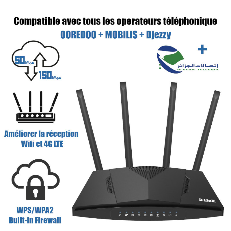 Routeur  Modem 4G sans fil N300 LTE compatible avec tous les operateurs Algérie Télécom OOREDOO + MOBILIS + Djezzy, Sans Configuration , prét a l’emploi