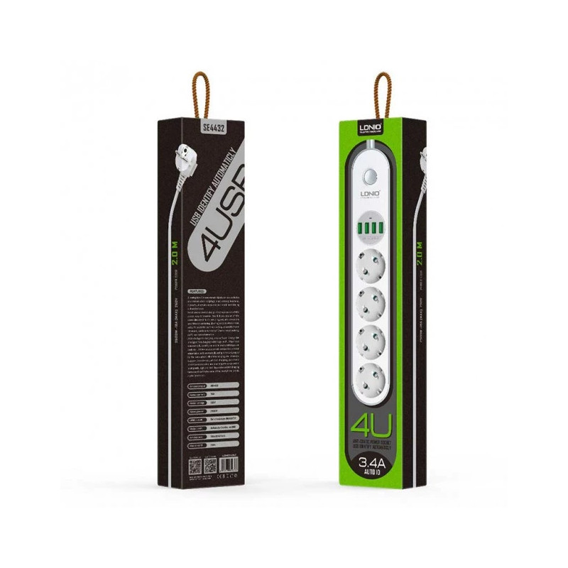 Multiprise LDNIO 4 sorties USB 3.4 A + 4 sorties UE SE4432 fiche technique: