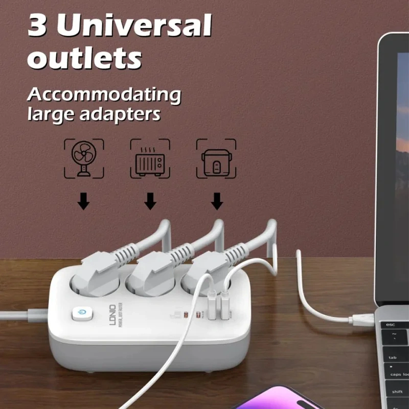 La Multiprise Siyoteam SE3436 est une solution polyvalente pour alimenter et recharger vos appareils. En effet, elle combine 3 prises CA et 4 ports USB avec charge rapide. Grâce à sa technologie GaN, elle offre une performance optimale. Ainsi, elle répond aux besoins des utilisateurs modernes.