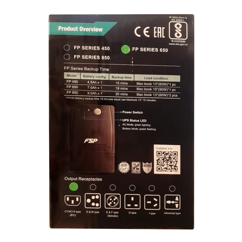 Onduleur FSP 650VA 360W 4 Prises FP650 (UPS) fiche technique