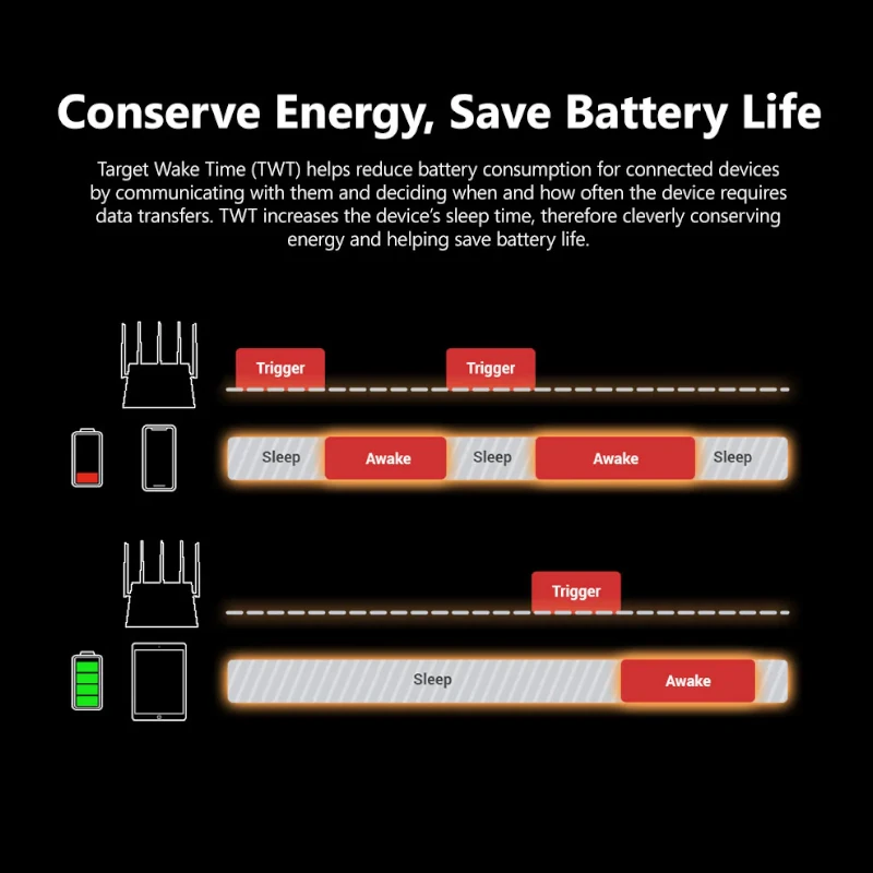 - Connectez Plus D’Appareils : La technologie OFDMA augmente la capacité par 4 pour permettre des transmissions simultanées vers plus d’appareils.